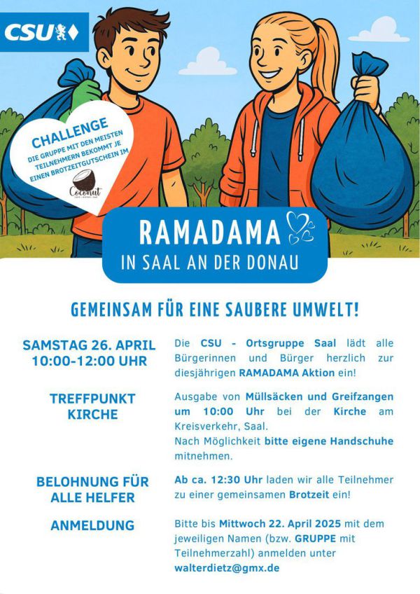 Unsere CSU Ortsgruppe Saal organisierte am Samstag den 26. April 2025 die Müllsammelaktion "RAMADAMA SAAL" – und sie war ein voller Erfolg!