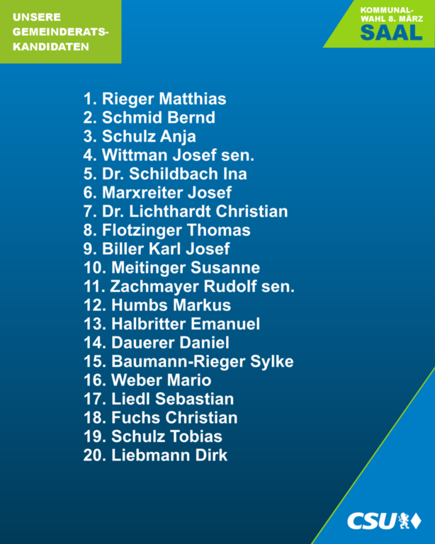 Die CSU Saal ist überzeugt, mit ihm einen kompetenten und bürgernahen Kandidaten zu präsentieren, der die Interessen der Bevölkerung mit Herz und Sachverstand